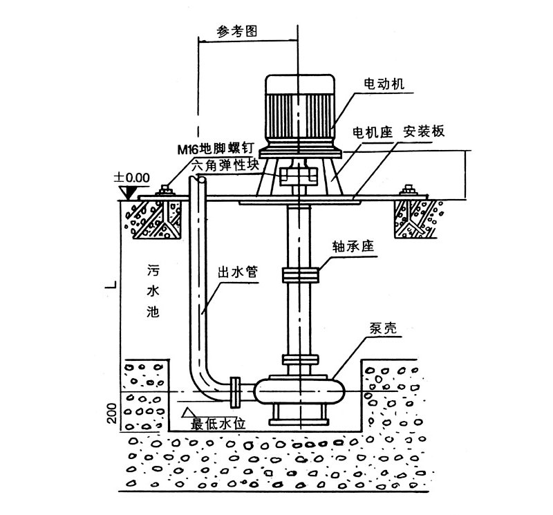 本泵可垂直或傾斜使用,占地面積小,蝸殼需埋在工作介質(zhì)中工作,容易啟動(dòng),不需引水,旋轉(zhuǎn)方向應(yīng)從電機(jī)尾部看是順時(shí)針方向工作。