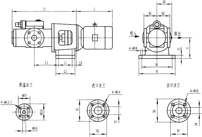 3GBW35,3GF35型法蘭式泵外形及安裝尺寸