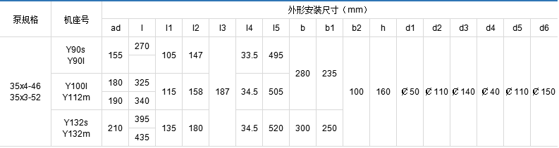 3GBW35,3G35型臥式泵外形及安裝尺寸