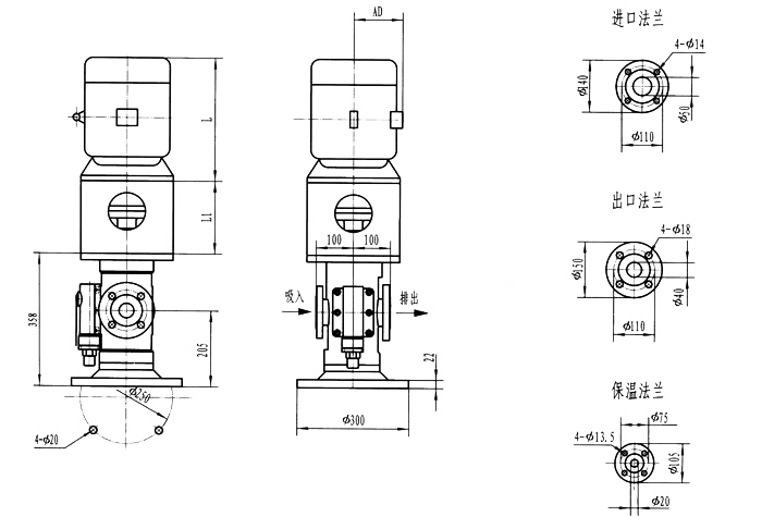 3GF30型法蘭式泵外形及安裝尺寸