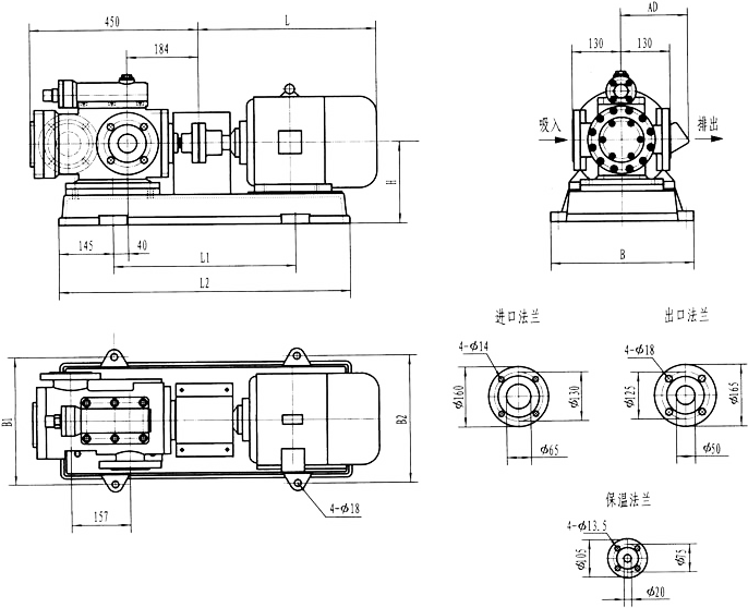 3GFBW60,3GF60型法蘭式泵外形及安裝尺寸
