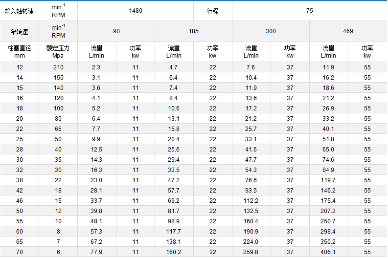 ◆ 你選型時表中流量不合適,可用電磁調(diào)速,變頻調(diào)速,變換柱塞直徑來調(diào)節(jié)流量,滿足選型需要。