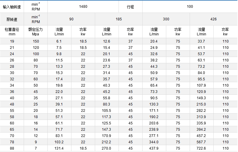 ◆ 你選型時(shí)表中流量不合適,可用電磁調(diào)速,變頻調(diào)速,變換柱塞直徑來(lái)調(diào)節(jié)流量,滿足選型需要。