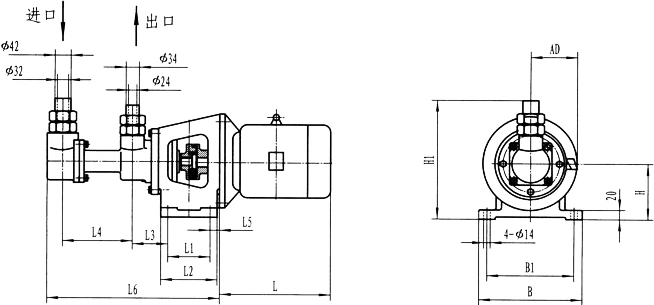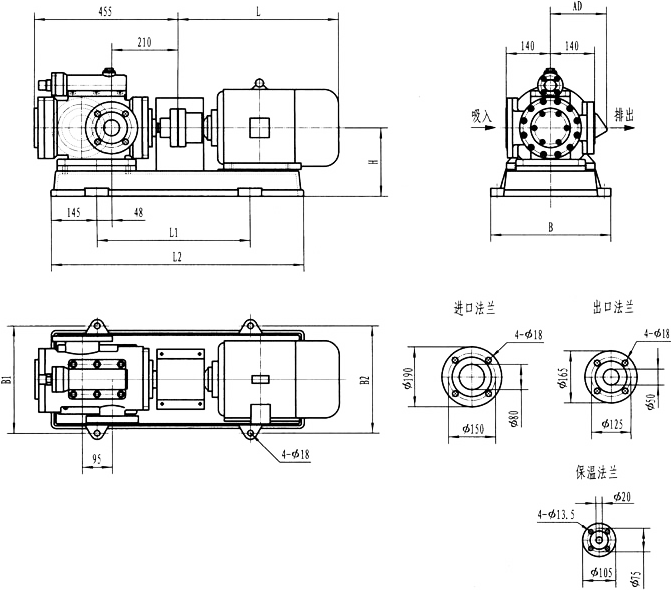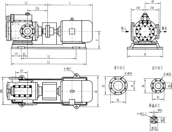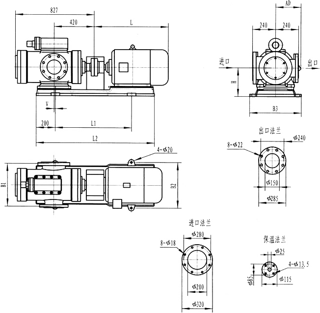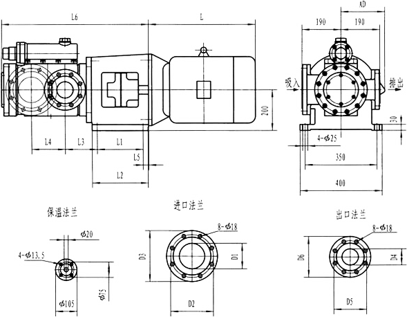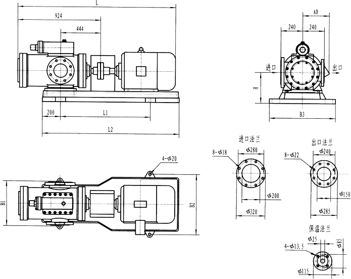3GR36型法蘭式泵外形及安裝尺寸