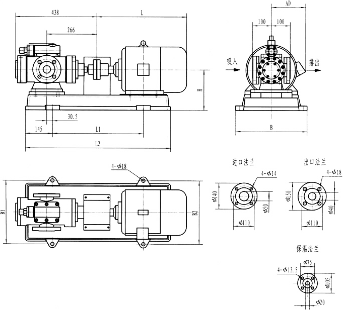 3GFBW50,3GF50型法蘭式泵外形及安裝尺寸
