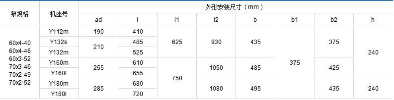 3G,3GR70x4型臥式泵外形及安裝尺寸