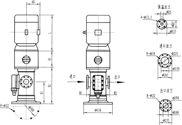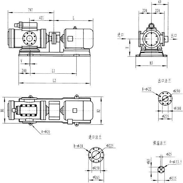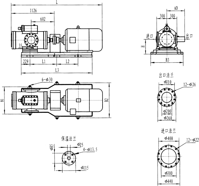 3GF30型法蘭式泵外形及安裝尺寸