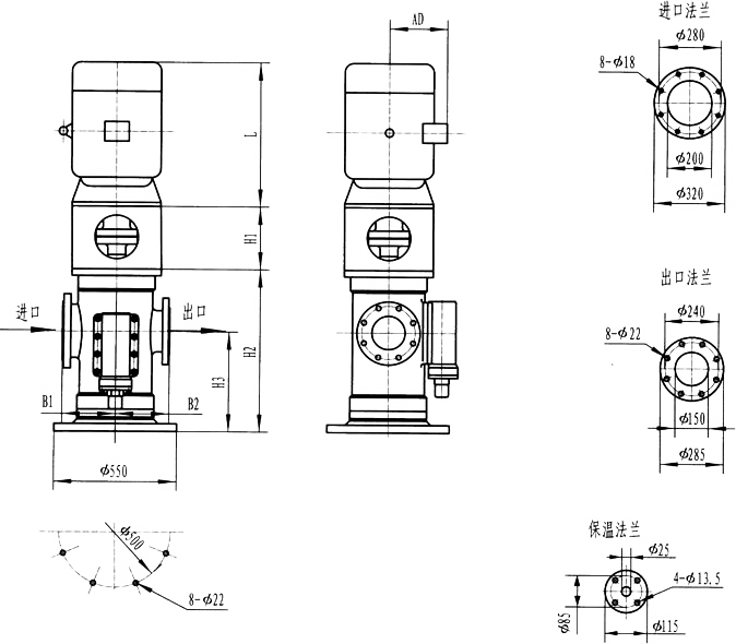 3GLBF80(85),3Gl80(85)型立式泵外形及安裝尺寸