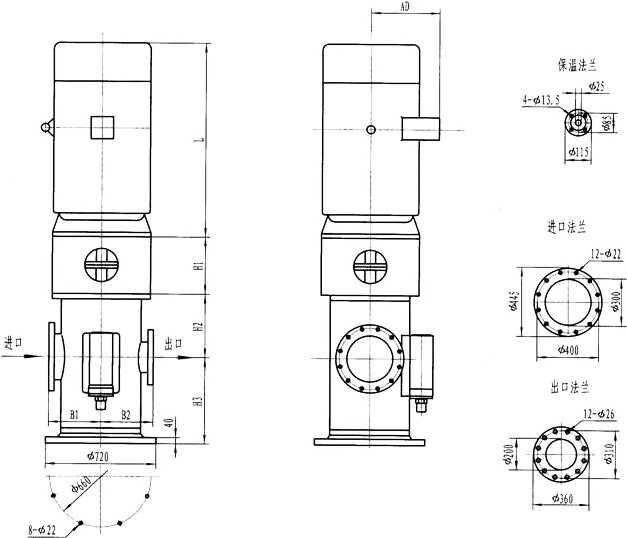 3GLBW180(200),3GL180(200)型立式泵外形及安裝尺寸