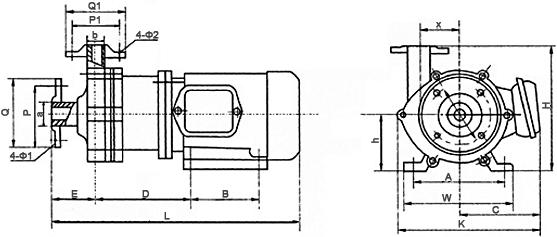 驅(qū)動(dòng)裝置采用主動(dòng)磁鐵聯(lián)軸器直接裝在電機(jī)軸上,泵室完全封閉,通過磁力偶合間接驅(qū)動(dòng)泵上帶磁鐵的葉輪旋轉(zhuǎn),結(jié)構(gòu)緊湊、安全節(jié)能。