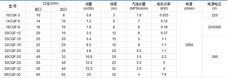 CQF型產(chǎn)品以增強(qiáng)聚丙烯為主材料,泵的過流零部件均為注塑成型,能耐大多數(shù)的有機(jī)和無機(jī)酸、堿和鹽類溶液,也始于在室外大氣中暴露,對應(yīng)力腐蝕破裂的抗蝕性良好。