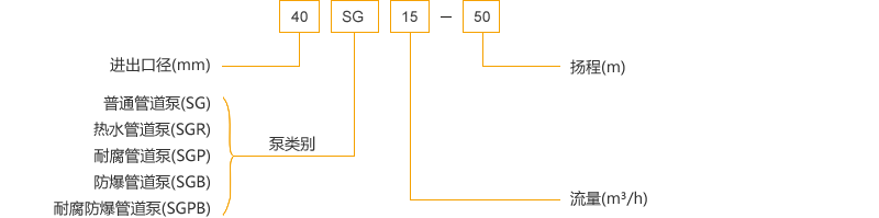 ◆ SGB系列防爆管道泵適用于輸送無腐蝕性液體,有甲烷或煤礦井下固定設(shè)備Ⅰ類及工廠Ⅱa、Ⅱb級,溫度組別為t1、t2、t3、t4組存在爆炸性混合物的其它工業(yè)場所。使用溫度80℃以下。